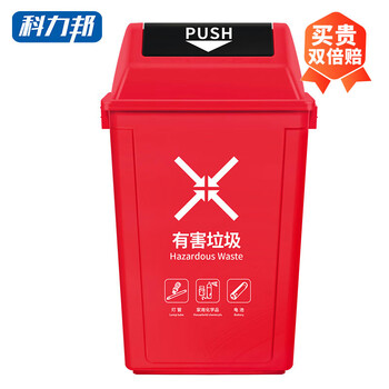 科力邦(Kelibang) 户外垃圾桶 大号环卫垃圾桶分类垃圾桶厨余有害商用景区物业翻盖垃圾桶60L KB1031 红色