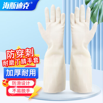 海斯迪克 HK-781 丁腈手套 新料洗衣耐磨防水乳胶手套 38cm白色光里M