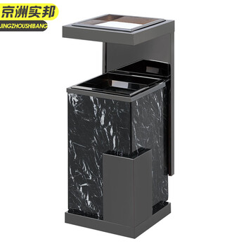 京洲实邦 加厚30*61cm黑色 不锈钢酒店宾馆大堂垃圾桶灭烟桶带烟灰缸吸烟桶立式桶 JZ-LJT10012