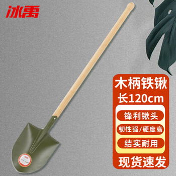 冰禹 BY-348-1 军绿色锹铲工业清洁木柄铁锹 铲土锹 铁锹 120cm优质军锹 1个