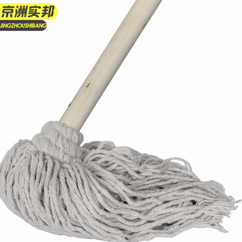 京洲实邦 木杆白线 企业工厂木杆圆头墩布棉纱吸水老式拖把 JZSB-TB8003