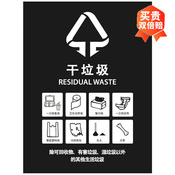 科力邦(Kelibang) 垃圾桶分类标识不干胶贴 上海干湿分类标签贴纸厨余有害标志贴15*20cm KBT001 干垃圾