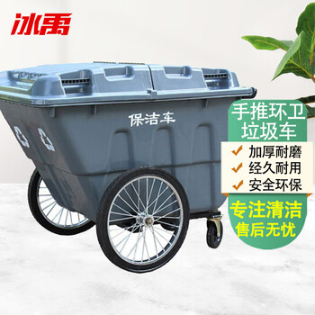 冰禹 BY-2048 环卫保洁垃圾车 手推垃圾车 物业清洁车 大容量塑料环卫垃圾车 灰色 400L