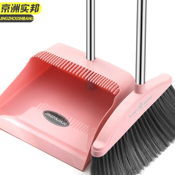 京洲实邦 粉色两件套 扫把簸箕套装软毛扫帚卫生间多用刮水 JZSB-8023