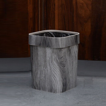 庄太太 12升方形灰色 复古仿木纹垃圾桶塑料带压圈无盖ZTT-9013