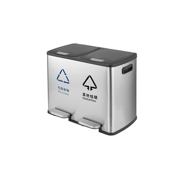 庄太太 MR2-砂钢色40L 商用脚踏式不锈钢分类垃圾桶环保大号室内干湿分离