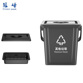 冠峰 20L方桶带漏网灰色 带滤网手提垃圾分类垃圾桶厨余茶渣干湿分离GNG-494