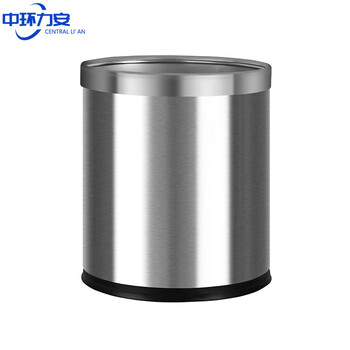 中环力安【圆形10L不锈钢单层/原色】垃圾桶方形小号宾馆垃圾桶无盖阻燃厕所塑料双层ZHLA-YX005