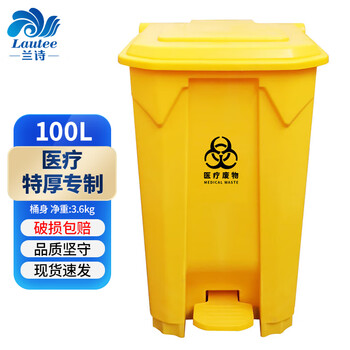 兰诗(LAUTEE)YJ-100 脚踏医疗垃圾桶 医疗垃圾桶医院诊所用废弃物收集桶 黄色100L