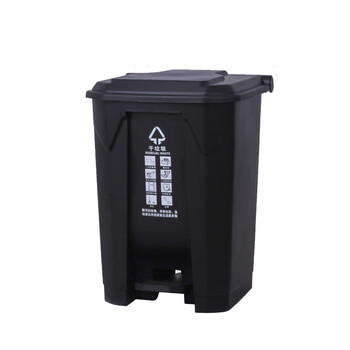 庄太太 【45L脚踏黑色干垃圾】上海脚踏垃圾桶大号干湿分离垃圾分类垃圾桶户外脚踩果带盖
