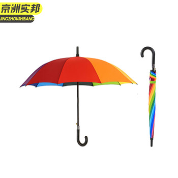 京洲实邦 A款长柄10骨常规彩虹款 雨伞定制logo可印广告图案大号长柄商务礼品伞JZSB-9089