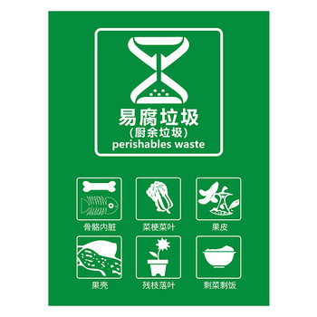 庄太太【14*21cm绿色易腐贴纸】新国标分类垃圾桶标志标识贴纸