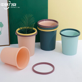 中环力安【大号颜色随机】北欧拼色垃圾桶 卫生间厨房分类垃圾篓办公室塑料垃圾桶