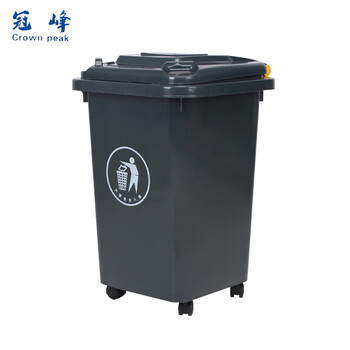 冠峰 50升万向轮桶(灰色)有轮 带轮子垃圾桶商用大容量带盖大号环卫户外餐饮垃圾箱厨房GNG-496
