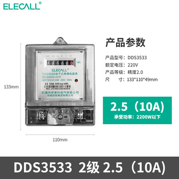 伊莱科(ELECALL)单相电子式智能电度表出租房220V电表空调电能表高精度黑色 DDS35332级2.5(10A)7