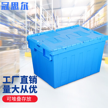 冠思尔塑料箱周转箱物流箱可插式带盖箱大号塑料箱特大收纳箱物流箱胶框中转仓库储物箱 600*400*265mm