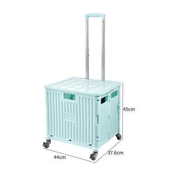 储力手提折叠拉杆收纳箱收纳整理箱 超市便携带轮子购物车蓝色 44*37.6*45厘米