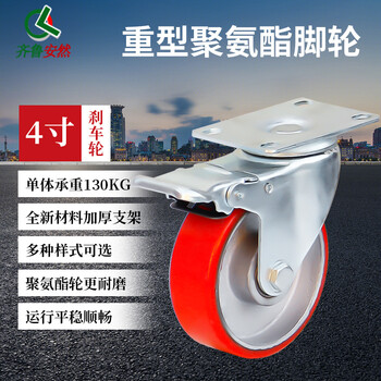 齐鲁安然 万向轮 工业耐磨聚氨酯脚轮 设备小车滑轮轮子 轱辘滚轮【4寸轻型 刹车轮 1个 承重约130KG】
