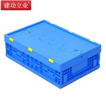 建功立业 折叠周转箱带盖 盖子可拆卸 外径600*400*175mm 五金存放箱运输箱储物箱 212018蓝色