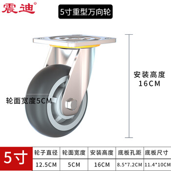 震迪轮子脚轮工业轻音平板车手推车轮子物流耐磨轱辘DR105万向5寸