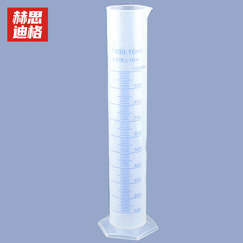 赫思迪格 塑料量筒 PP量筒 耐酸碱 蓝线印度量筒 1000ML JG-306