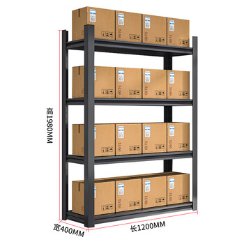 海客艺佳 120*40*198货架仓储仓库多功能展示架多层储物架中型200KG/层承重四层黑色白色