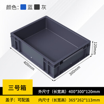 时通EU箱欧标汽配周转箱塑料物流箱收纳零件盒盖子600*400mm蓝色全新料