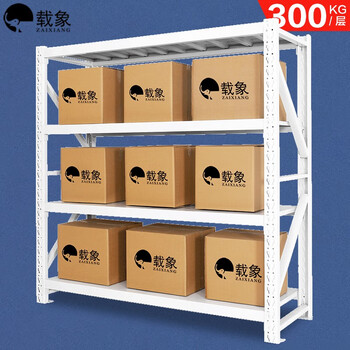 载象中型货架仓储仓库货物架多层置物架库房储物架展示架4层白色300kg主架200*60*200