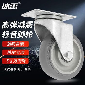 京云灿万向轮静音轮子带刹车3寸重型塑芯聚氨酯轮4寸5寸平板手推车4寸刹车轮