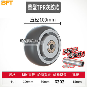 贝傅特 重型4寸TPR单轮 橡胶单轮 工业拖车平板推车轮子承重防滑纹理滑轮单轮