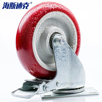 海斯迪克 中型聚氨酯转向轮 PU工业脚轮手推车板车轮枣红色 5寸刹车轮