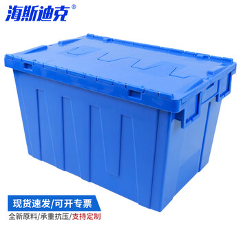 海斯迪克 HKCL-170 加厚中转箱商超配送带盖套叠塑料周转箱 批发物流箱 斜插式翻盖箱 箱600*400*355 蓝