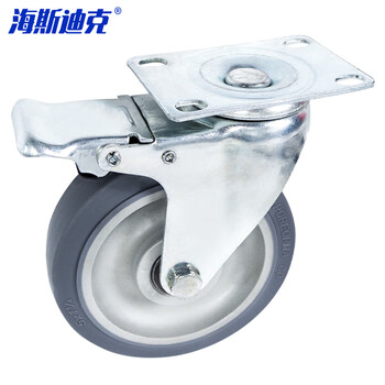 海斯迪克 TPR轻音中型脚轮 工业滚轮手推车通用转向轮 5寸刹车