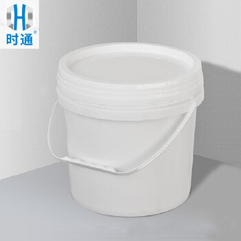 时通塑料圆形桶 小桶水桶密封桶 涂料桶乳胶漆包装桶带提手铁提手10L白色