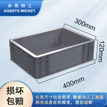 米奇特工(Agents mickey)灰色加厚EU箱 塑料物流箱 欧标汽配周转箱 收纳整理储物箱 400*300*120灰色