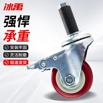冰禹 BYA-439 膨胀插杆脚轮 线棒脚轮 膨胀胶工业周转车精益管轮子 3寸刹车