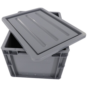 海斯迪克 EU周转箱塑料箱 汽配可堆式储物箱零件箱 灰色带盖600*400*340