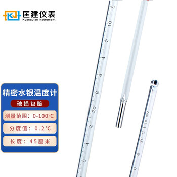 匡建仪表(CONJANT) 精密温度计0-100℃分度值0.2℃ 实验室用水银玻璃棒式测温仪