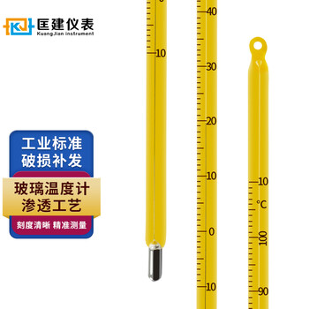 匡建仪表(CONJANT) 玻璃温度计可检定 -100+40℃(红水手工雕刻型)工业玻璃棒液体测温仪