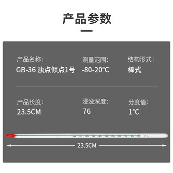 匡建仪表(CONJANT)石油玻璃温度计 GB-36 1支 -80+20℃精密棒式测温仪 工业化工实验室用 可过检 GB-36
