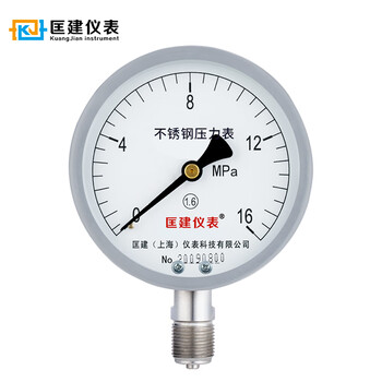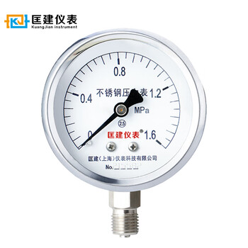 匡建仪表(CONJANT)不锈钢耐震压力表 YTN-100BFZ系列 1台 轴向安装 不带面板 防腐蚀 耐高温 0-10MPa