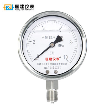 匡建仪表(CONJANT)不锈钢耐震压力表 YTN-100BFZT系列 1台轴向安装带面板 抗震 防腐蚀 耐高温 0-10MPa