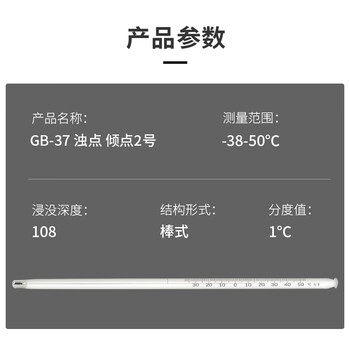 匡建仪表(CONJANT)石油玻璃温度计 GB-37 1支 -38+50℃精密棒式测温仪 工业化工实验室用 可过检 GB-37