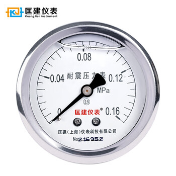 匡建仪表(CONJANT)不锈钢耐震压力表 YTN-100BFZT系列 1台轴向安装带面板 抗震 防腐蚀 耐高温 0-0.16MPa