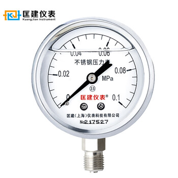匡建仪表(CONJANT)不锈钢耐震压力表 YTN-100BFZ系列 1台 轴向安装 不带面板 防腐蚀 耐高温 0-0.25MPa