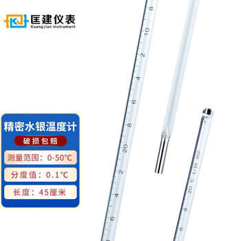 匡建仪表(CONJANT) 精密温度计 0-50℃分度值0.1℃ 实验室用水银玻璃棒式测温仪