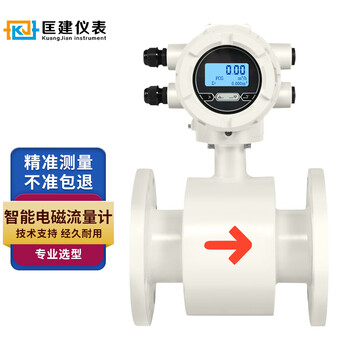匡建仪表 智能电磁流量计电池款 水污水纸浆泥浆流量计 高精度一体式流量计量器四氟衬里 DN50 四氟衬里