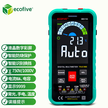 ecofive(莱靡) MS118 卡片万用表 智能防烧大彩屏双显示免换挡真有效值 1年维保