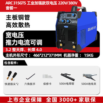 瑞凌ARC315GTS工业级逆变直流电焊机双电压220V 380V两用 【套餐1】配电焊钳+地线夹