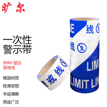 旷尔 一次性警戒线隔离带 道路交通施工护栏 注意安全警戒线【90M-蓝白警戒线】10卷起批